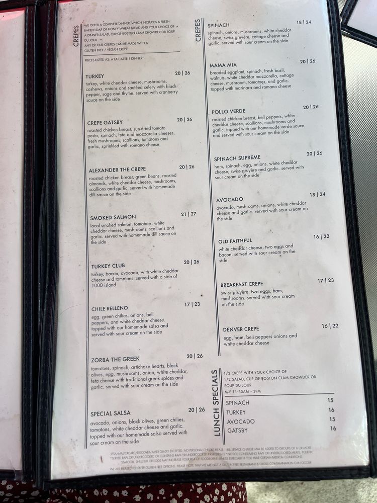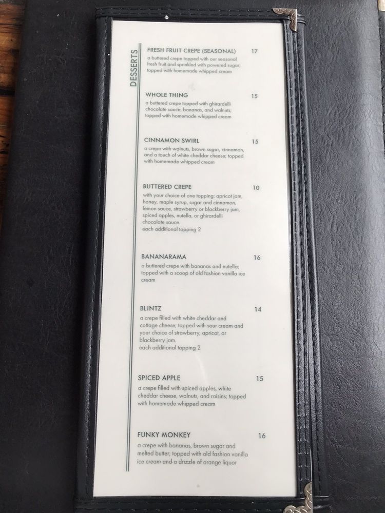 Customers rave about the consistently delicious dishes since 1973, highlighting the savory crepes and delightful desserts like the whole thing crepe with warm chocolate sauce. The cozy wooden bar ambience and lush garden patio create a charming and peaceful setting, perfect for enjoying brunch with friends or a romantic date. The welcoming staff, live music events, and dog-friendly atmosphere add to the overall positive dining experience at The Crepe Place. Don't miss out on this neighborhood favorite for a memorable dining experience.