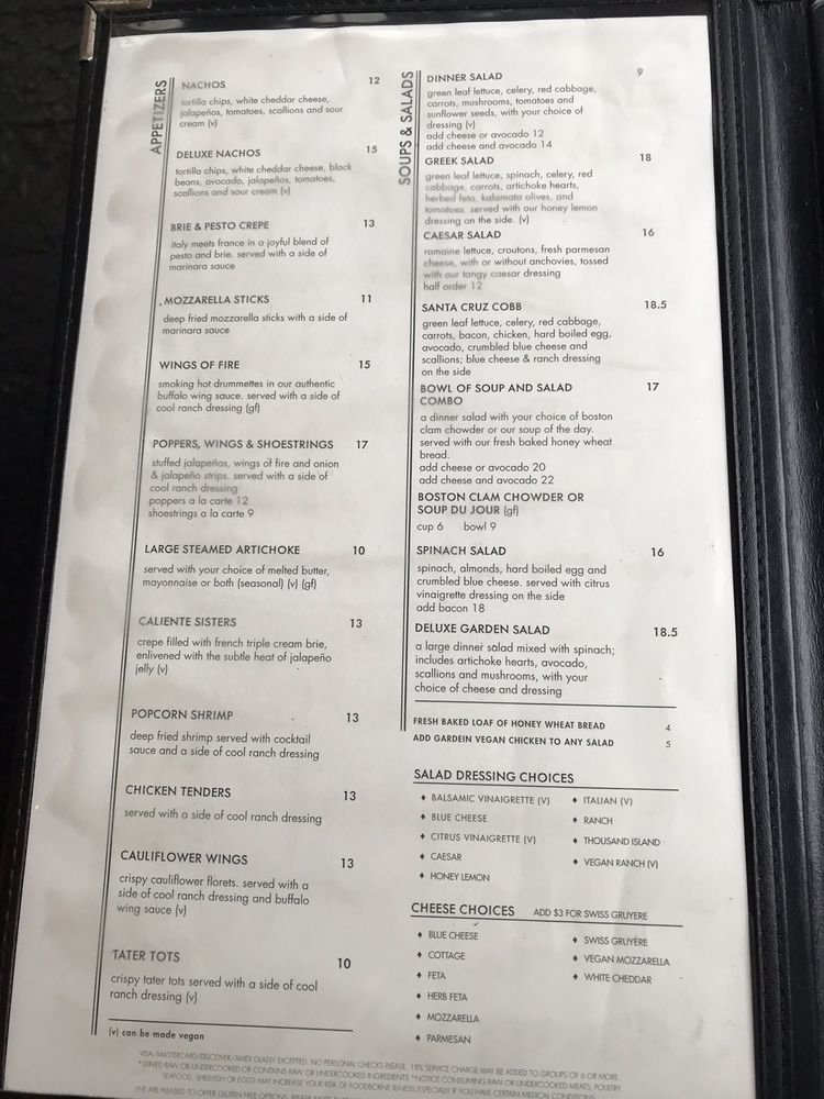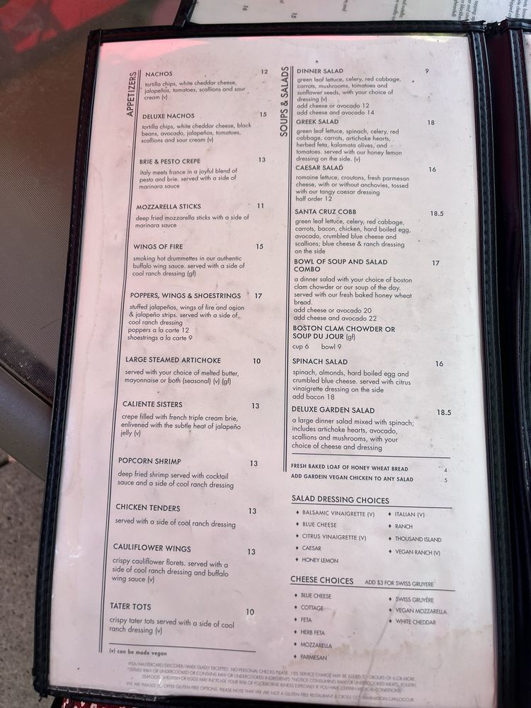 Introducing the menu of The Crepe Place in Santa Cruz offers a diverse selection of appetizers, fresh salads, homemade soups, and enticing entree crepes. From the delectable Caliente Sisters crepe with brie and jalapeno jelly to the mouth-watering Crepe Gatsby filled with chicken, pesto, and cheeses, The Crepe Place delivers a unique dining experience.